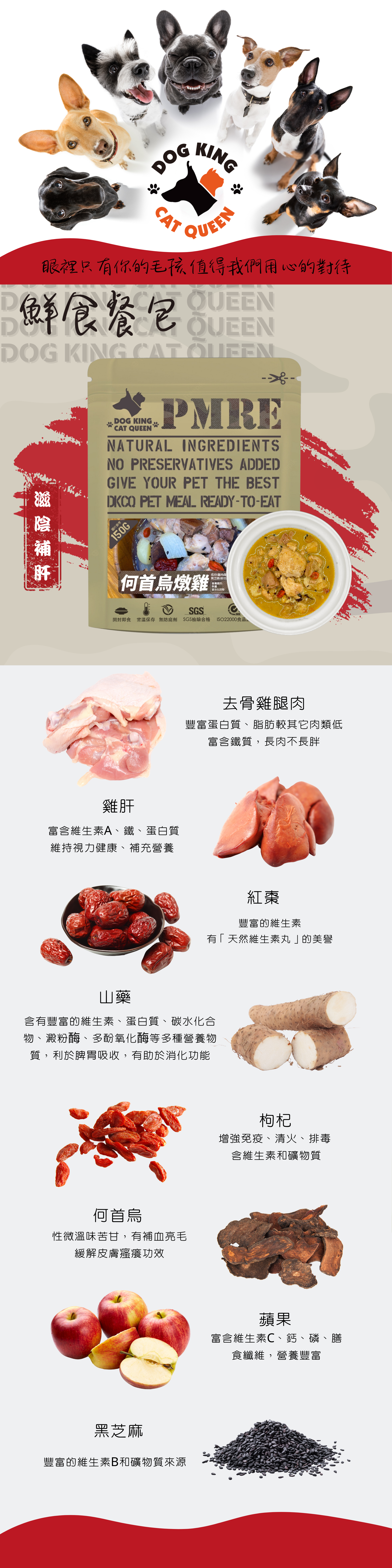 - 添加漢方食材:何首烏、紅棗、枸杞,滋補養身、亮毛護膚
